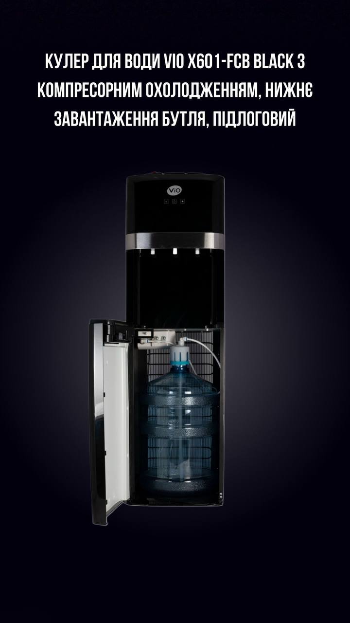 КУЛЕР ДЛЯ ВОДИ VIO Х601-FCB BLACK З КОМПРЕСОРНИМ ОХОЛОДЖЕННЯМ, НИЖНЄ ЗАВАНТАЖЕННЯ БУТЛЯ, ПІДЛОГОВИЙ