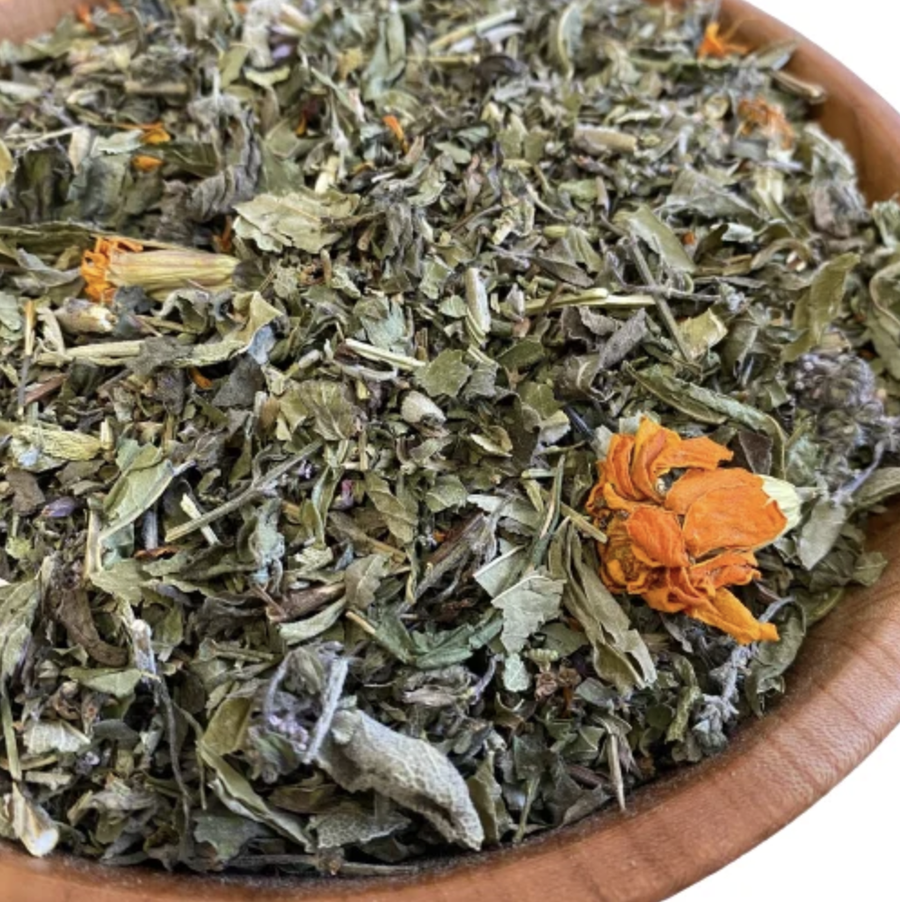 Склад: м’ята (30%), гісоп (28%), шавлія (16%), іван-чай (16%), чорнобривці (10%).